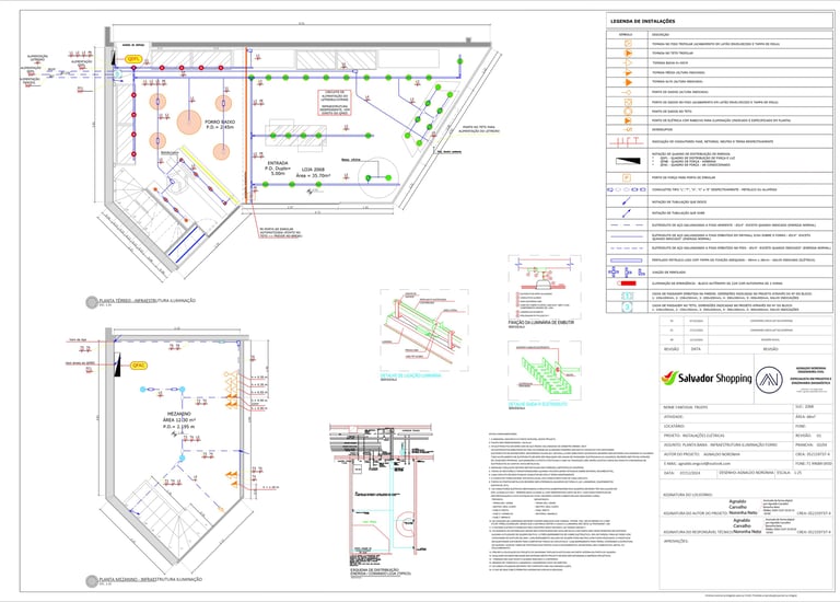 Projetos de instalações elétricas e iluminação.
